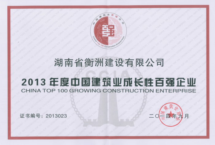 我司第四次獲“中國建筑業(yè)最具成長性百強企業(yè)”榮譽稱號,位居榮譽榜單第23位