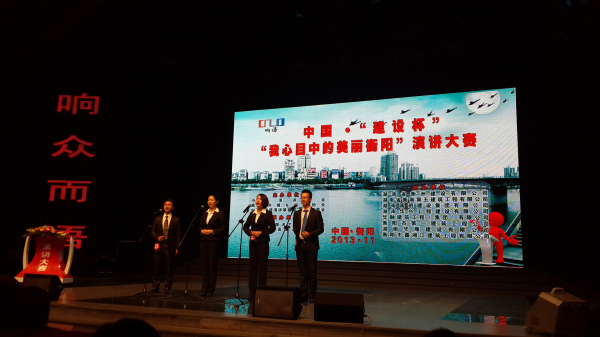 本次大賽是為了宣傳貫徹黨的十八大精神,呼應(yīng)2014年將在長(zhǎng)沙舉辦的中國(guó)•“我心目中的理想社區(qū)”全國(guó)演講大賽,推進(jìn)美麗衡陽(yáng)建設(shè),以演講的正能量為實(shí)現(xiàn)“中國(guó)夢(mèng)”提供鏗鏘發(fā)聲的舞臺(tái)。經(jīng)中國(guó)演講協(xié)會(huì)、市城鄉(xiāng)建設(shè)協(xié)會(huì)、中國(guó)“響語(yǔ)演講頌祖國(guó)”大賽組委會(huì)研究,決定在全市范圍內(nèi)舉辦中國(guó)“建設(shè)杯”•“我心目中的美麗衡陽(yáng)”演講大賽。經(jīng)過(guò)半年的緊張籌備,通過(guò)100余名演講選手參賽海選、51名演講選手復(fù)賽,最終有26名種子選手站在了演講決賽的舞臺(tái)。我司謝夢(mèng)陽(yáng)、唐霞、李瑩、曾勝四人演講《因?qū)W⒍绕稹窐s獲一等獎(jiǎng),謝夢(mèng)陽(yáng)、唐霞的個(gè)人演講分獲二、三等獎(jiǎng)。公司代表隊(duì)榮獲中國(guó)•建設(shè)杯•“我心目中的美麗衡陽(yáng)”演講賽優(yōu)秀組織獎(jiǎng)。