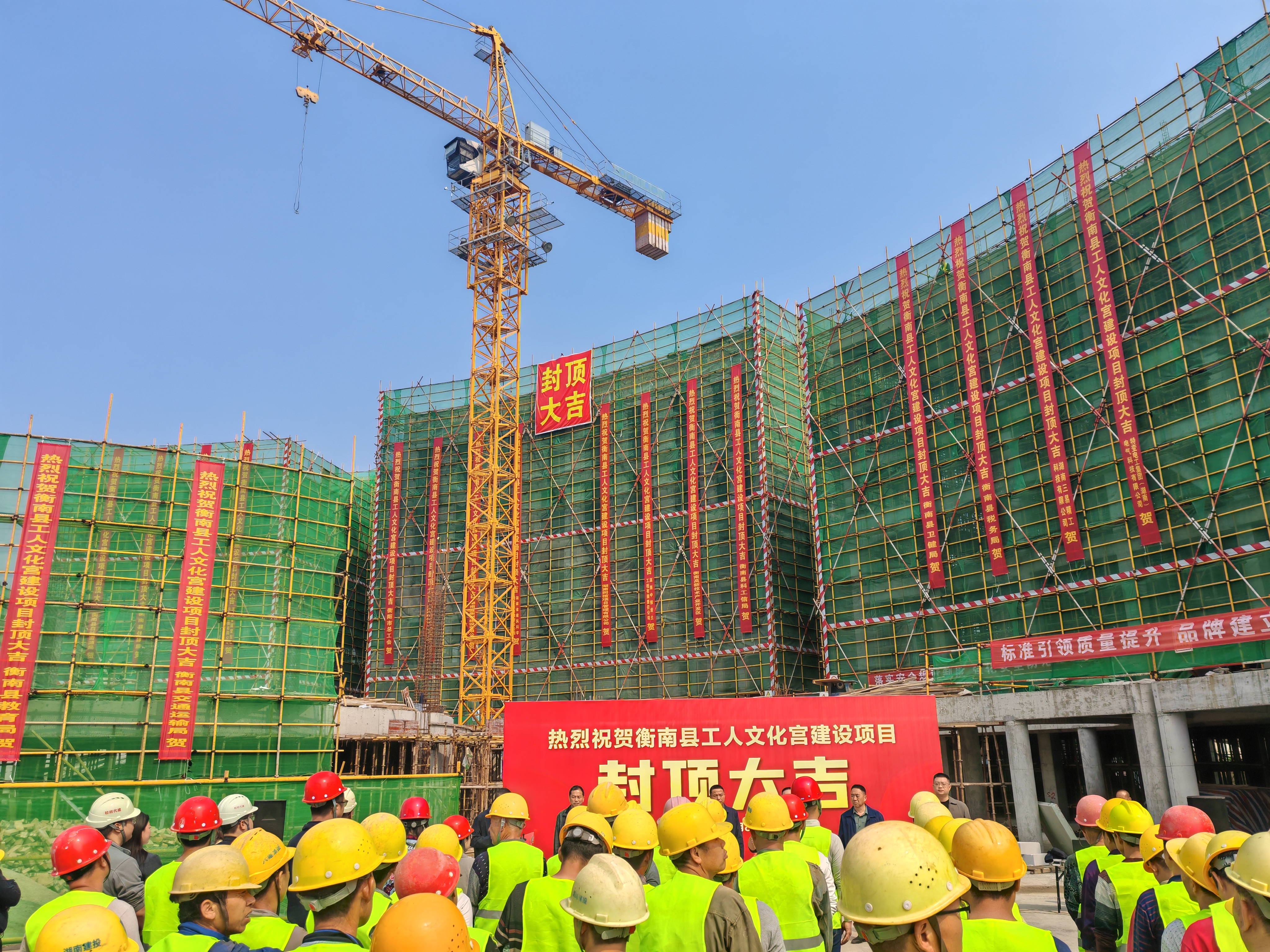 4月8日,由湖南省衡洲建設(shè)有限公司承建的衡南縣工人文化宮建設(shè)項目主體結(jié)構(gòu)喜迎全面封頂。這一重要節(jié)點的達(dá)成,不僅標(biāo)志著項目建設(shè)取得了階段性成果,也為后續(xù)工程按期交付奠定了堅實的基礎(chǔ)。衡陽市總工會黨組成員、副主席蔣孝仲,衡南縣人大常委會黨組成員、副主任,縣總工會主席賀金平攜衡南縣總工會領(lǐng)導(dǎo)班子成員,與湖南省衡洲建設(shè)有限公司總經(jīng)理唐崇宇、設(shè)計單位、監(jiān)理單位相關(guān)負(fù)責(zé)人共同見證這一重要時刻。