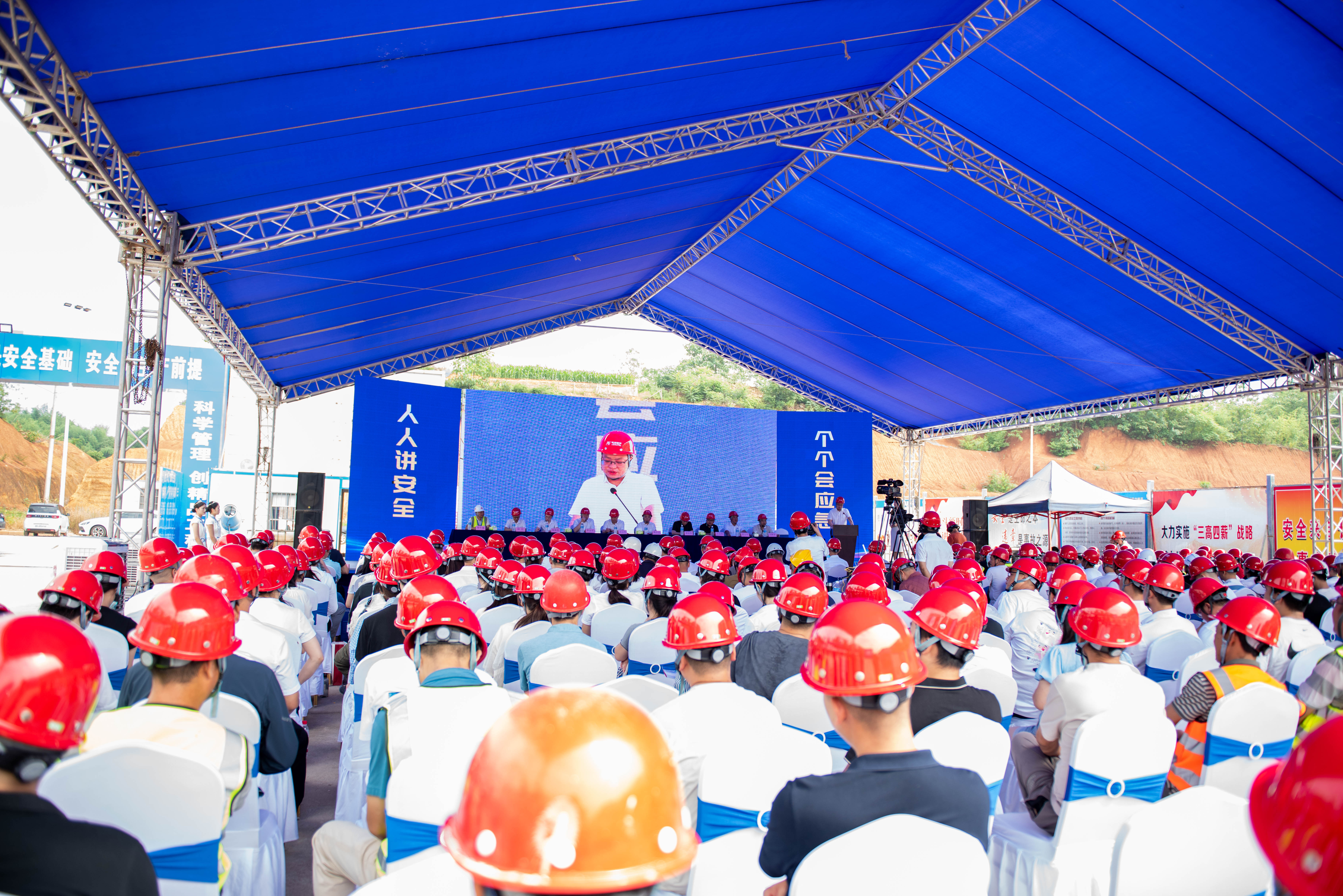 本次觀摩會緊扣 “人人講安全,個個會應(yīng)急 —— 查找身邊安全隱患” 主題,創(chuàng)新采用 “主會場 + 分會場” 實時聯(lián)動、“線上+線下” 同步推進(jìn)的形式,全方位呈現(xiàn)了項目在安全生產(chǎn)標(biāo)準(zhǔn)化、綠色建造、建筑工業(yè)化方面的前沿理念,以及智慧化、質(zhì)量標(biāo)準(zhǔn)化、精細(xì)化管理的諸多亮點。衡南縣人民政府副縣長周小云、衡南縣住房和城鄉(xiāng)建設(shè)局黨組書記、局長全云生等領(lǐng)導(dǎo)及縣內(nèi)各建設(shè)項目的建設(shè)單位項目負(fù)責(zé)人、監(jiān)理單位、施工企業(yè)負(fù)責(zé)人等共 300 余人出席活動。衡洲建設(shè)董事長唐仕亮、總經(jīng)理唐崇宇參加啟動儀式。唐崇宇總經(jīng)理在啟動儀式上分享了項目創(chuàng)建安全生產(chǎn)標(biāo)準(zhǔn)化工地的做法與經(jīng)驗。