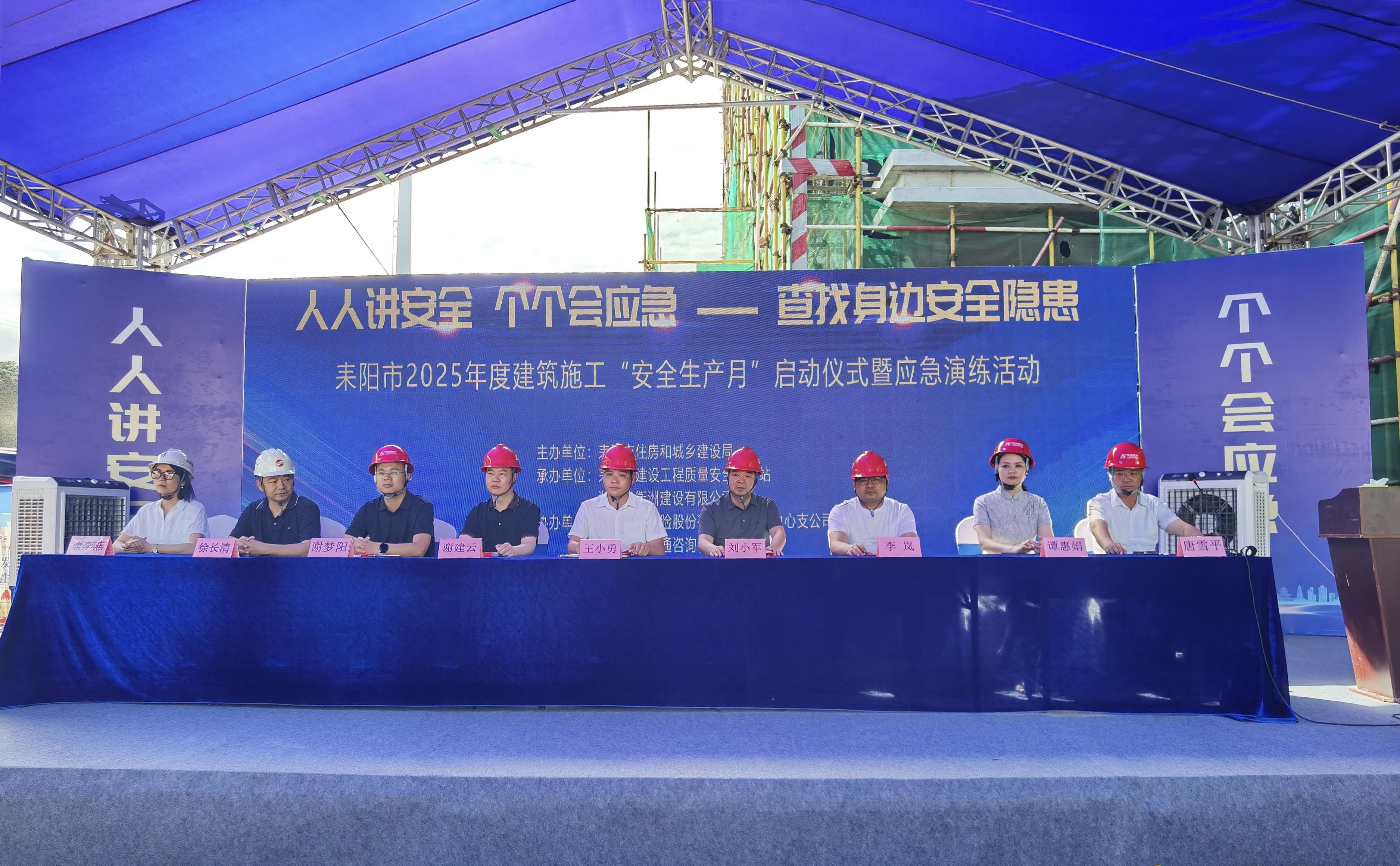 6 月17日,以 “人人講安全 個個會應(yīng)急 —— 查找身邊安全隱患” 為主題的耒陽市 2025 年度建筑施工安全生產(chǎn)月活動啟動儀式暨應(yīng)急演練活動,在湖南省衡洲建設(shè)有限公司承建的耒陽市 “二所合一”(看守所、拘留所) 建設(shè)項目現(xiàn)場成功舉辦。耒陽市住房和城鄉(xiāng)建設(shè)局總工程師王小勇,市住建局、質(zhì)安站等職能部門領(lǐng)導(dǎo),以及全市300余名在建工地建設(shè)、施工、監(jiān)理單位項目負(fù)責(zé)人齊聚一堂,共繪安全生產(chǎn)藍(lán)圖。作為本次活動的承辦方,衡洲建設(shè)充分發(fā)揮企業(yè)擔(dān)當(dāng),緊扣活動主題,以高標(biāo)準(zhǔn)、嚴(yán)要求精心籌備每一個環(huán)節(jié),全方位保障活動高效有序開展?;顒娱_場,全體人員通過觀看安全生產(chǎn)主題宣傳片與警示片,敲響安全警鐘。副總經(jīng)理謝夢陽代表公司致辭,他表示,衡洲建設(shè)始終將安全生產(chǎn)視為企業(yè)發(fā)展的生命線,未來將持續(xù)加大安全投入,強化員工安全培訓(xùn),以更高標(biāo)準(zhǔn)落實安全生產(chǎn)責(zé)任,為耒陽市建筑行業(yè)安全生產(chǎn)樹立標(biāo)桿。