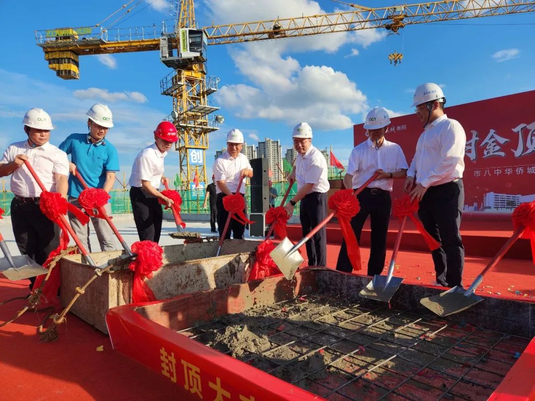 7月31日,隨著最后一方混凝土的澆筑完成,由湖南省衡洲建設有限公司承建的衡陽市松梅湖片區(qū)改善人居環(huán)境建設(松梅湖學校A校區(qū))工程總承包項目(下稱“松梅湖學校A校區(qū)項目”)主體結構順利封頂。衡陽市委市政府、石鼓區(qū)委區(qū)政府、衡陽市教育局、石鼓區(qū)教育局、湖南華僑城、衡陽市八中相關領導以及湖南省衡洲建設有限公司董事長唐仕亮出